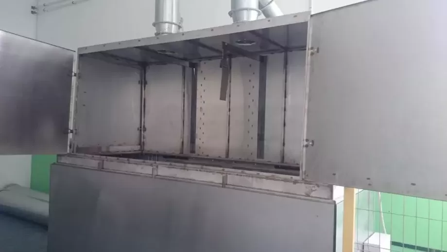Purpose: for placing the workpieces, protecting the working area from vapor emissions, and holding technological tooling. Dimensions: 3000×1000×2300 mm. Parameters to be coordinated with the customer. |